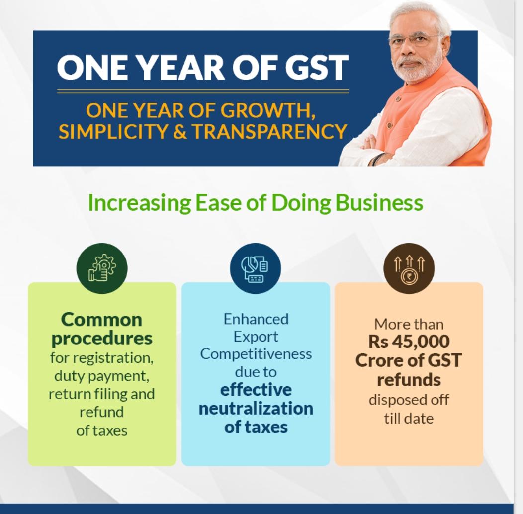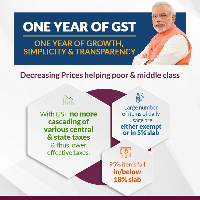 ऐतिहासिक कर सुधार विकास, सरलता और पारदर्शिता; जीएसटी के सफल एक साल पूर्ण होने के अवसर पर आदरणीय प्रधानमंत्री श्री @narendramodi जी तथा केंद्र सरकार को बधाई और शुभकामनाएँ। जीएसटी एक राष्ट्र एक कर की दिशा में बड़ा कदम है। #GSTForNewIndia