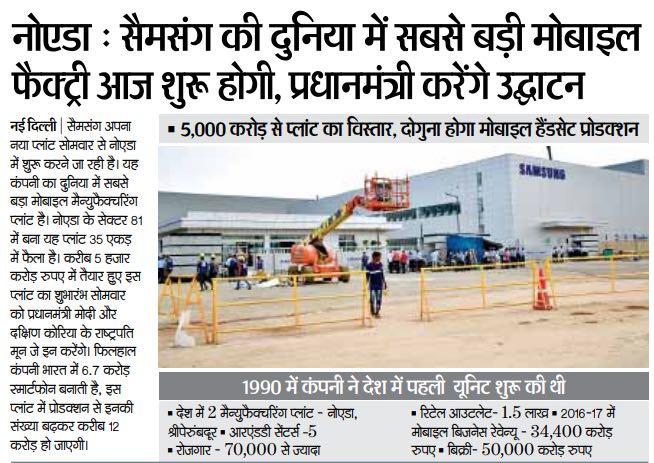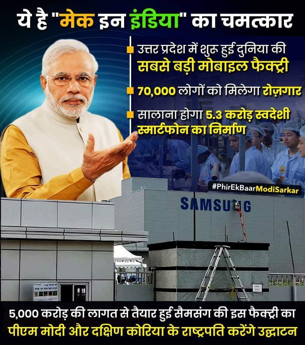 भारत एक बड़े मैन्युफैक्चरिंग हब के रूप में उभर रहा है, इसी क्रम में 'मेक इन इंडिया' के तहत नोएडा में विश्व की सबसे बड़ी मोबाइल फैक्ट्री का शुभारंभ आज पीएम @NarendraModi द्वारा किया जायेगा, जिससे देश में तकनीक आयेगी, साथ ही युवाओं को रोजगार मिलेगा। #LargestMobileFactoryInUP